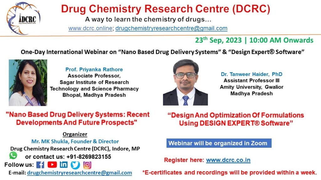 Account Name- Drug Chemistry Research Center;Account No.- 201026516104;IFSC Code-INDB0001029;Bank Name- Indusind Bank.