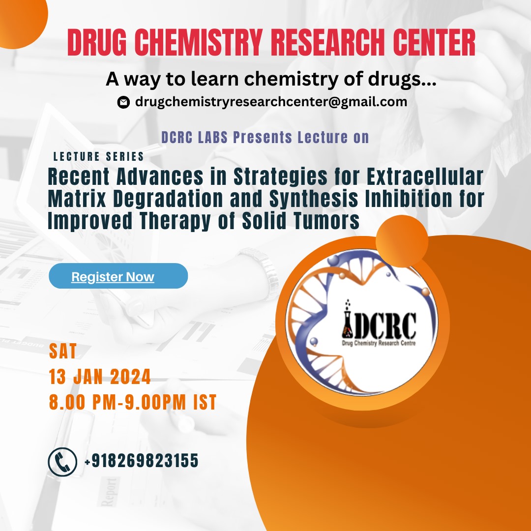 Drug Chemistry Research Center (DCRC) is organizing a Lecture on “Recent Advances in Strategies for Extracellular Matrix Degradation and Synthesis Inhibition for Improved Therapy of Solid Tumors” on Saturday, 13th January 2024.
